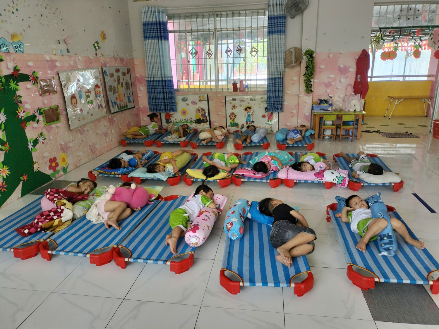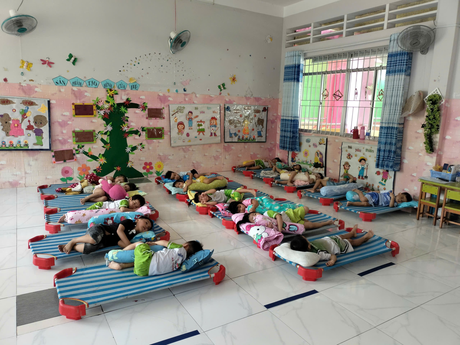 Các lớp bán trú được sắp xếp hợp lý, đảm bảo đủ giường, chiếu, chăn gối, quạt mát, ánh sáng và thoáng mát, tạo điều kiện cho trẻ nghỉ ngơi sau giờ học tập vui chơi.
